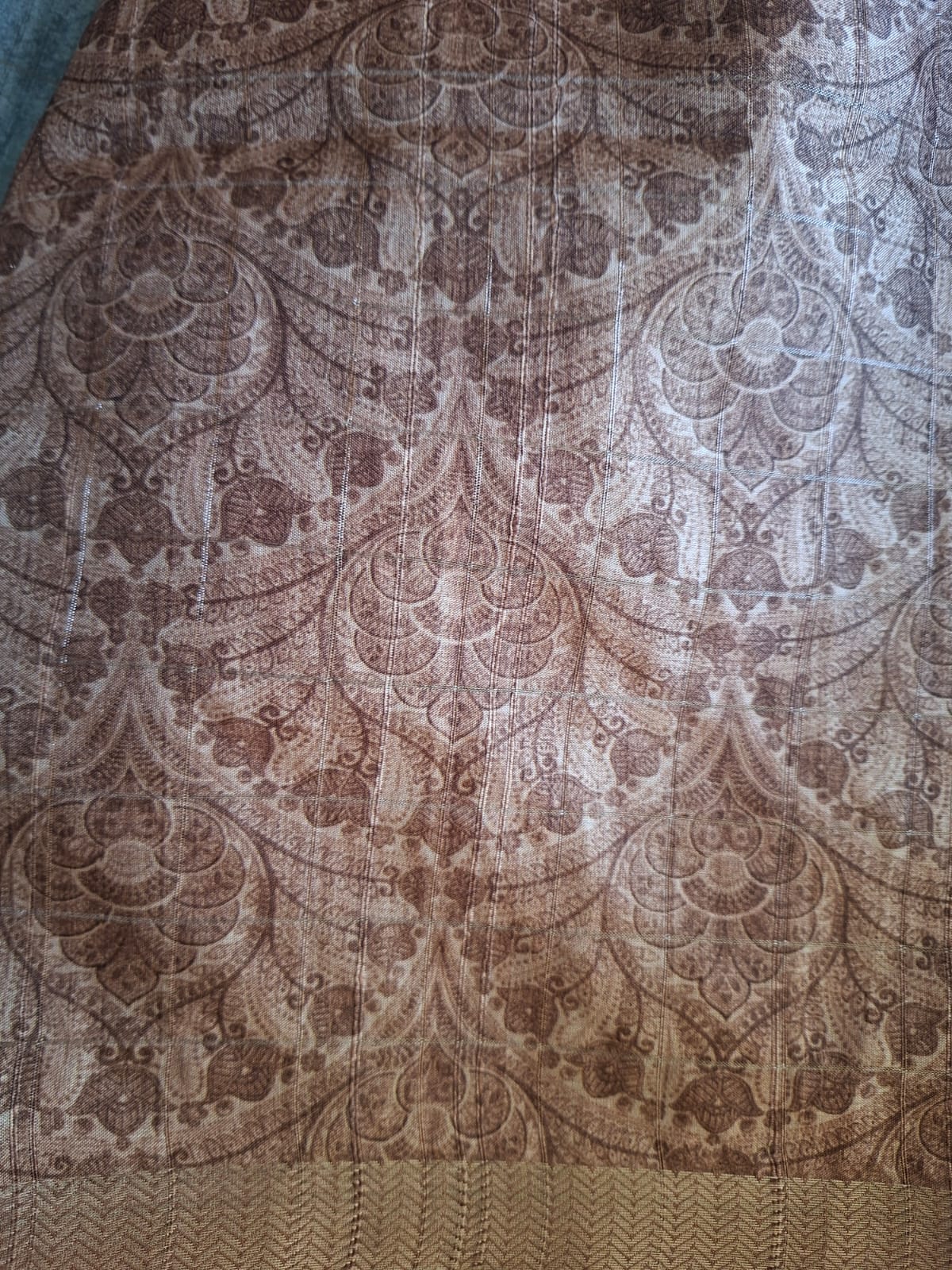 blue and brown semi tussur big motis saree
