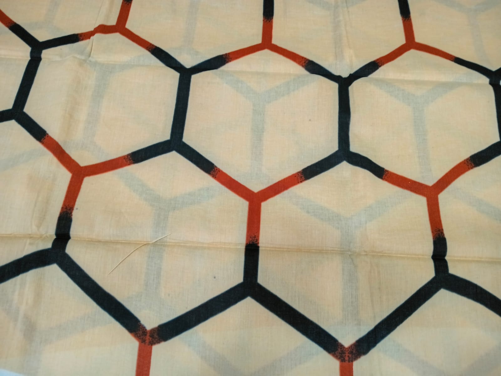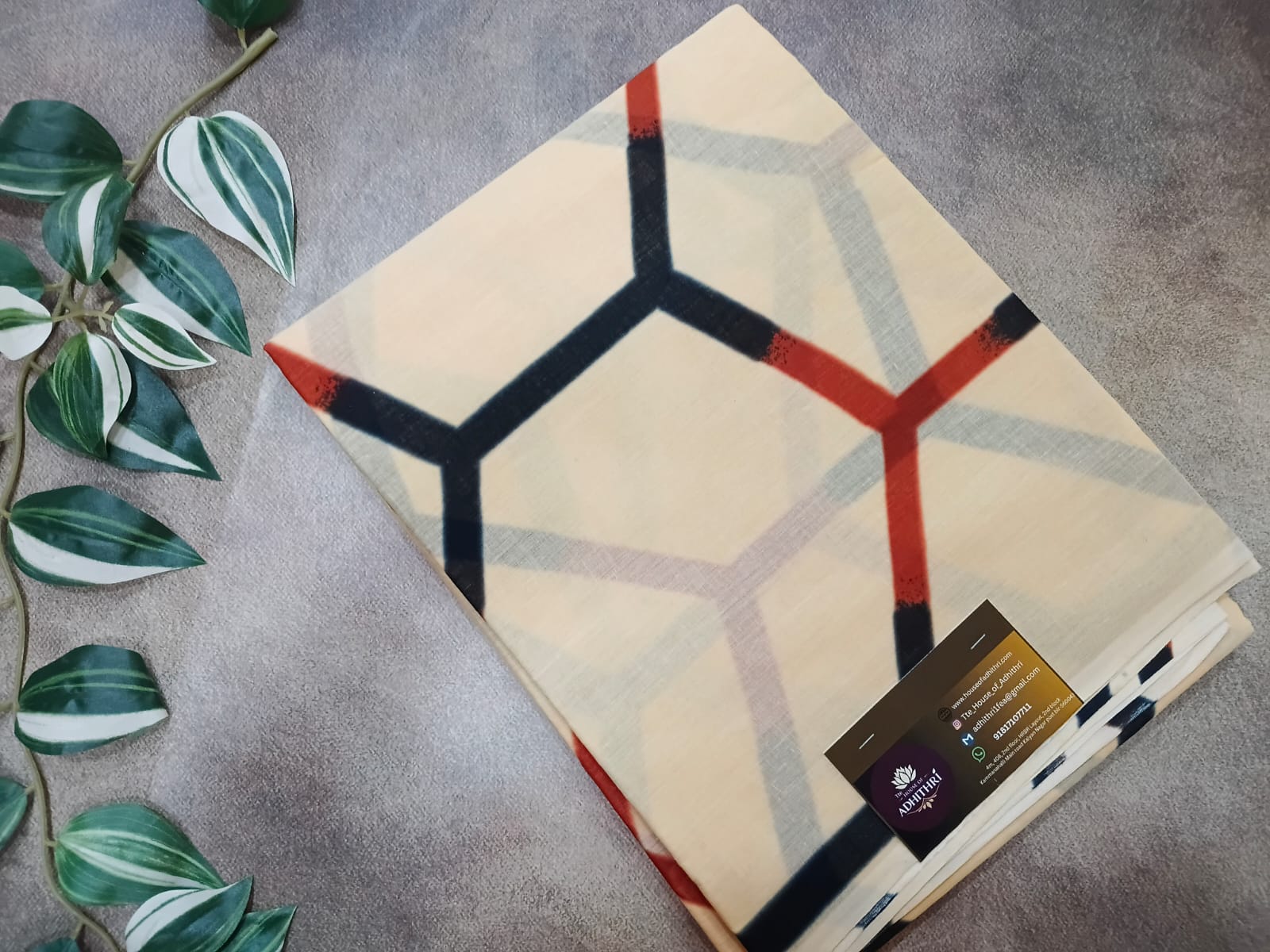 Handwoven mul-mul cotton in striking black and yellow Bagru print, a traditional block-printed design from Rajasthan. This lightweight, breathable fabric showcases authentic craftsmanship with natural dyes and intricate geometric patterns characteristic of Bagru printing techniques. Perfect for sarees, dupattas, or contemporary wear, the mul-mul weave offers a soft drape and comfortable wear in warm climates. Each piece reflects the artisan heritage of Indian textile traditions, combining timeless design with everyday wearability.