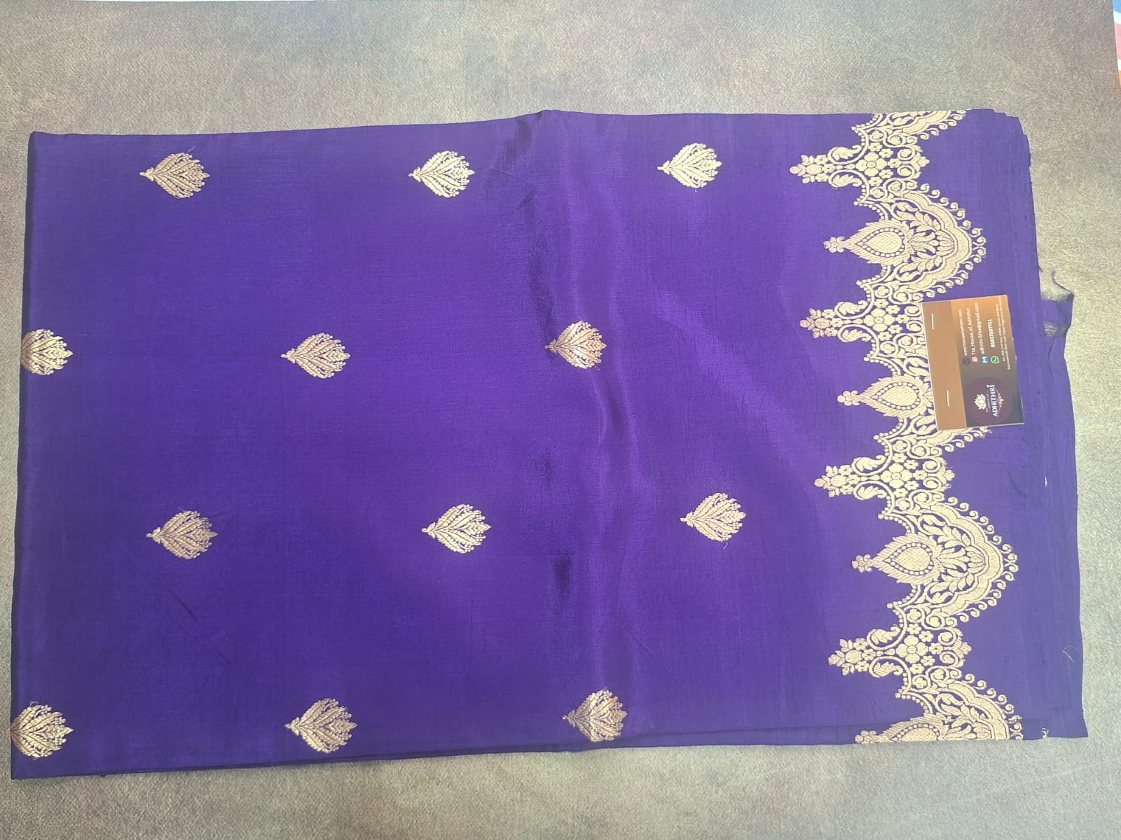 # Blue Raw Mango Kadhwa Saree with Geometric Pattern Elevate your traditional wardrobe with this striking blue raw mango kadhwa saree, a masterpiece of handwoven craftsmanship. The rich blue hue is complemented by intricate geometric patterns that showcase meticulous weaving techniques passed down through generations. Raw mango fabric offers a luxurious drape and natural texture, making it ideal for both festive occasions and everyday elegance. The geometric motifs add contemporary sophistication while honoring classical textile traditions. Perfect for those who appreciate authentic Indian textiles with refined design sensibility