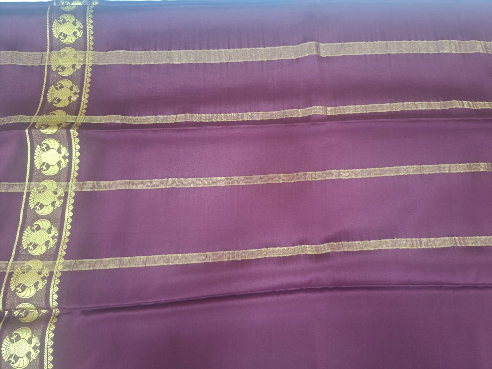 Elevate your saree collection with this exquisite Brown Four Line Pure Gandabarunda Mysore Silk Saree. Crafted from premium Mysore silk, this saree showcases the timeless Gandabarunda motif—a symbol of strength and tradition in South Indian weaving. The rich brown hue complements all skin tones, while the four-line Gandabarunda pattern adds sophisticated detail to the pallu and body. Pure silk construction ensures a luxurious drape, breathability, and lasting durability. Perfect for festivals, weddings, and special occasions, this handcrafted saree