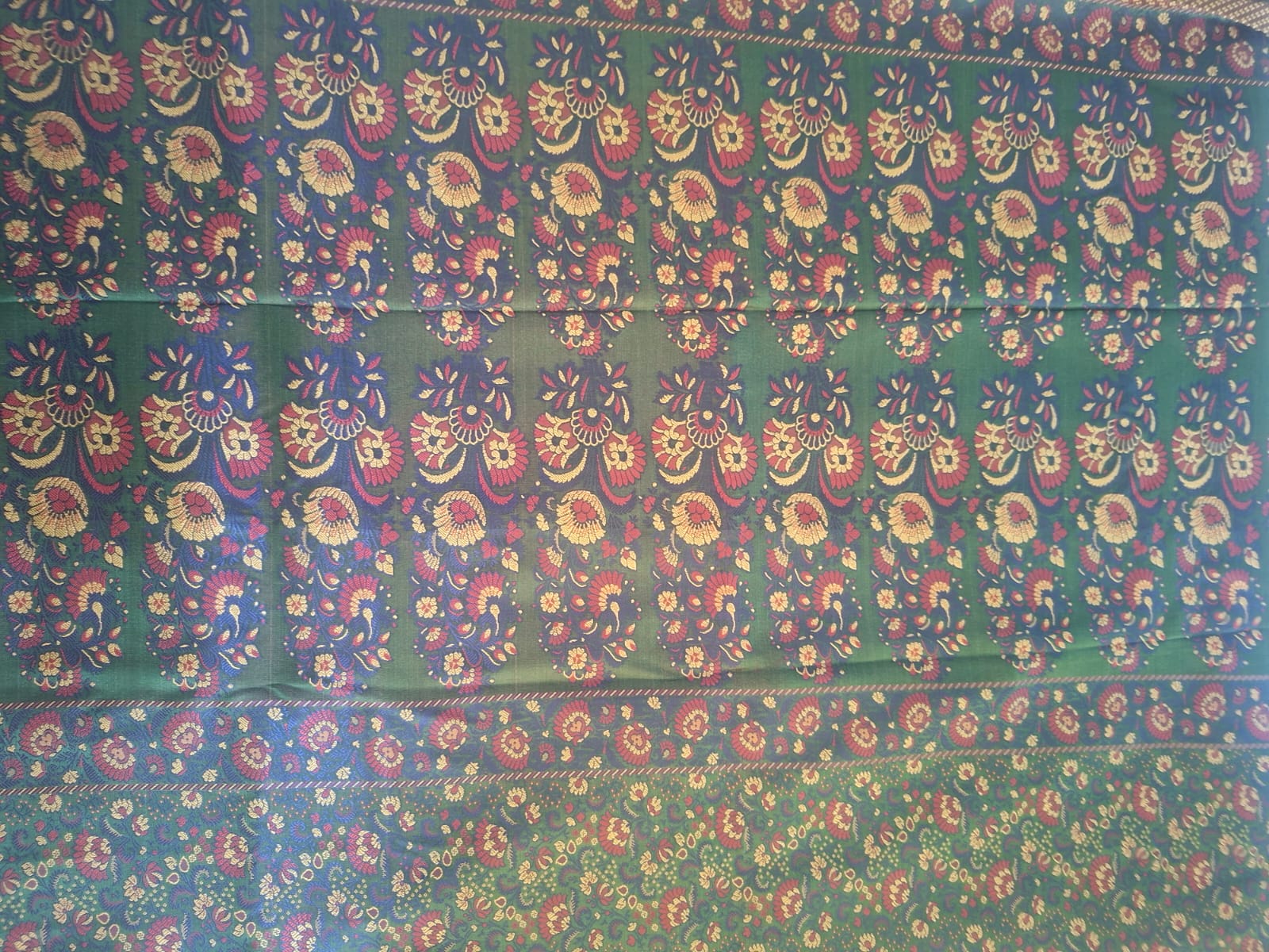 Dark green floral pashimna saree
