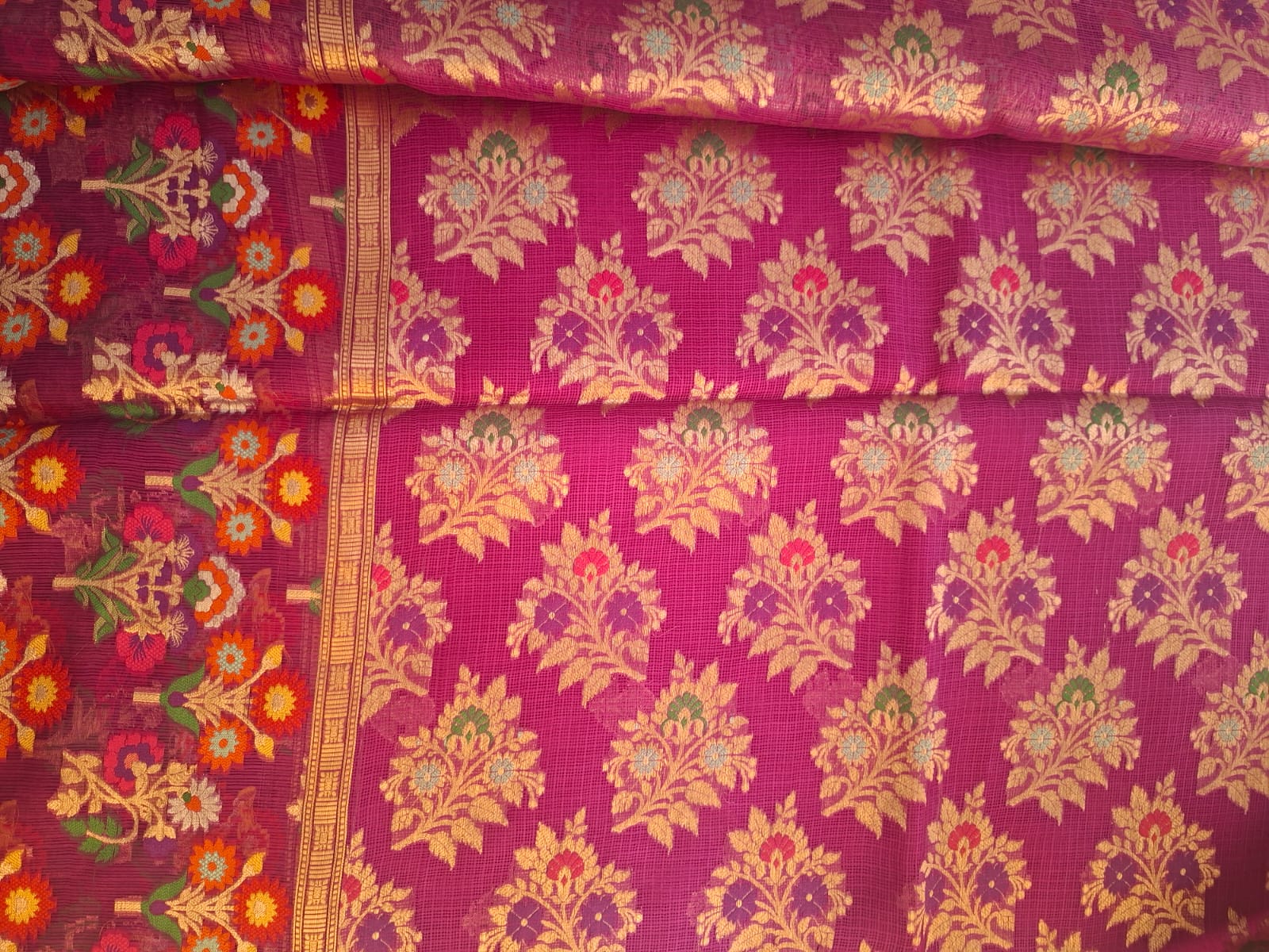 # Wine Red Banarasi Pure Kota Silk Saree Drape yourself in timeless elegance with this wine red Banarasi pure kota silk saree, a masterpiece of traditional Indian weaving. Crafted from premium kota silk, this saree showcases the intricate Banarasi weaving technique, renowned for its delicate patterns and lustrous finish. The rich wine red hue exudes sophistication, making it ideal for weddings, festivals, and formal occasions. The lightweight yet durable kota silk ensures comfortable wear throughout the day, while the authentic Banarasi craftsmanship guarantees exceptional quality and longevity. A versatile addition to any traditional wardrobe, this saree seamlessly blends heritage artistry with refined aesthetics